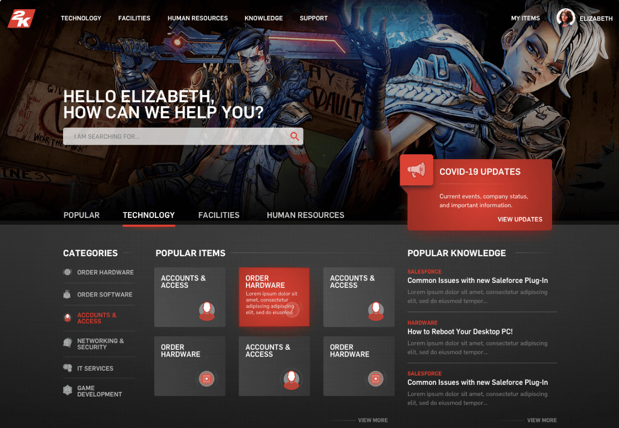 Created a unified multi-department digital workplace experience that included segmentation for multiple brands (Take2 and 2K).